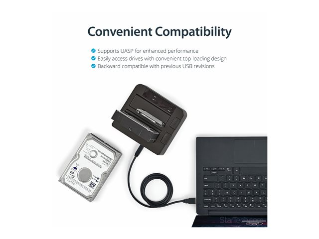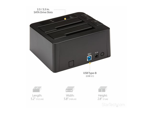 StarTech.com Dual-Bay USB 3.1 to SATA Hard Drive Docking Station, USB 3.1 (10 Gbps) Hard Drive Dock, External 2.53.5 SATA IIIIII, SSDHDD Docking Station, Hot-Swap Hard Drive Bay - Top-Loading - Kontrollerkort - 2.5", 3.5" - USB 3.1 (Gen 2) - svart