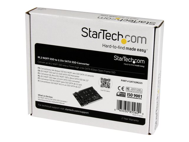 StarTech.com M.2 SATA SSD till 2,5-tums SATA-adapter - M.2 NGFF till SATA-konverterare - 7 mm - Fäste för öppen ram - M2-hårddiskadapter - Kontrollerkort - 1 Kanal - SATA 6Gb/s - SATA 6Gb/s - för P/N: BRACKET125PT, BRACKET125PTP, SATERASER4, SDOCK1EU3P2, SDOCK4U313, USB31C2SAT3