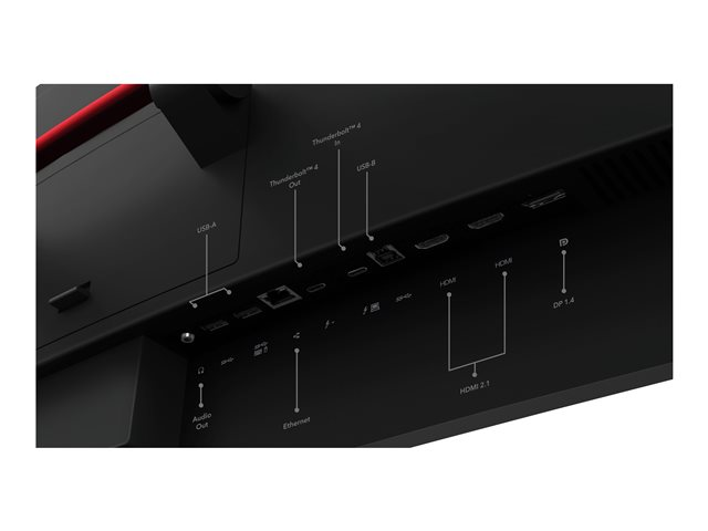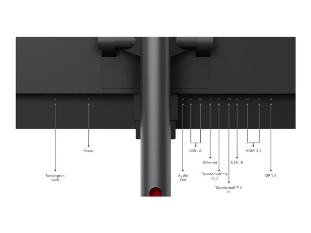 | Gränssnitt | 2 x HDMI DisplayPort 1.4 Thunderbolt 4 uppströms (ström upp till 100W) Thunderbolt 4 nedströms (ström upp till 27W) USB 3.2 Gen 1 uppströms (Typ B) 4 x USB 3.2 Gen 1 nedströms USB-C 3.2 Gen 1 nedströms (ström upp till 15W) Linjeutgång för ljud LAN (RJ-45) |
