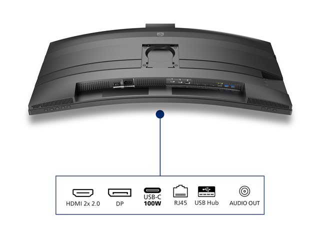 | Gränssnitt | DisplayPort 1.4 (HDCP 1.4, HDCP 2.2) 2 x HDMI (HDCP 1.4, HDCP 2.2) Thunderbolt 4/USB-C-ingång (HDCP 1,4, HDCP 2,2, DisplayPort altläge, ström upp till 100 W) Thunderbolt 4-/USB-C-utgång (ström upp till 15 W) 3 x USB 3.2 Gen 2 nedströms (Typ A) USB 3.2 Gen 2 nedströms (snabbladdning BC 1.2) USB-C nedströms med strömmatning (ström upp till 45W) Linjeingång/utgång för ljud (minijack) LAN (RJ-45) |