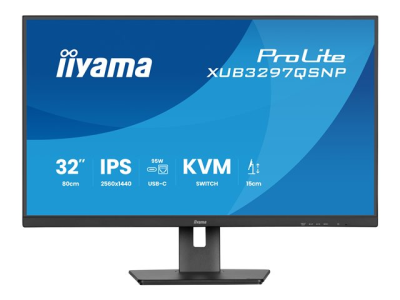 The iiyama ProLite XUB3297QSNP-B1 is a 32-inch desktop monitor designed to enhance productivity and entertainment. With a native resolution of 2560 x 1440 and a dynamic contrast ratio of 80,000,000:1, this monitor delivers vibrant colors and sharp images, making it suitable for both professional and gaming environments. The matte screen coating reduces glare, while technologies such as Motion Blur Reduction and Flicker-Free technology ensure a comfortable viewing experience. Its wide viewing angles of +89 to -89 degrees allow users to see the screen clearly from different positions. The monitor features built-in devices, including a KVM switch and USB hub, simplifying connections for multiple devices. The height, tilt, and swivel adjustments provide flexibility in display positioning, promoting ergonomic usage. With various connectivity options such as HDMI, DisplayPort, and USB-C, this monitor supports a range of setups, allowing for daisy chaining and seamless multitasking. The iiyama ProLite XUB3297QSNP-B1 is efficient with its energy consumption and compliant with multiple environmental standards, making it a responsible choice for users looking to balance performance and sustainability.