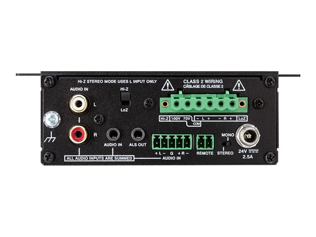 | Specifikationer för förstärkarutmatning | 25 Watt - 8 ohm - 2 kanaler 25 Watt - 8 ohm - 1 kanaler (bryggad) 25 Watt - 4 ohm - 2 kanaler 50 Watt - 4 ohm - 1 kanaler (bryggad) 50 Watt - 1 kanaler (70/100V) |