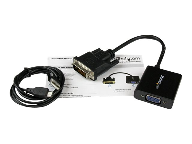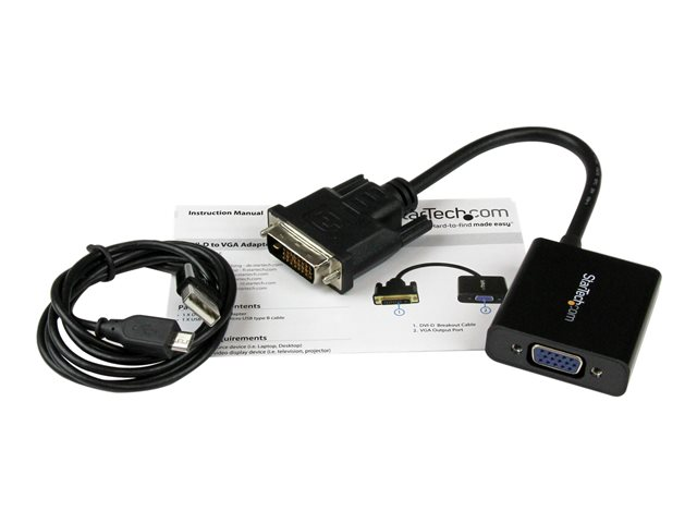 StarTech.com Aktiv DVI-D till VGA-kabeladapter - 1920x1200 - Videokort - DVI-D, Mikro-USB typ B (endast ström) till HD-15 (VGA) (hona) - 24.8 m - aktiv, 1920 x 1200 (WUXGA) stöd - svart