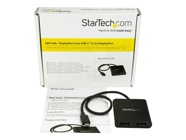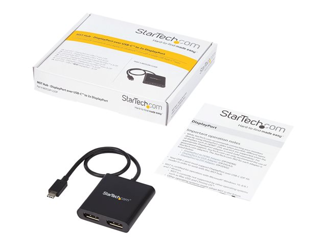 StarTech.com USB-C till DisplayPort-flerskärmsadapter - MST-hubb med 2 portar - DisplayPort-adapter - USB-C (hane) till DisplayPort (hona) - Displayport 1.2/Thunderbolt 3 - 38.6 m - USB-ström, 4K30 Hz (3840 x 2160) stöd, 2560 x 1600 (WQXGA)-stöd 60 Hz - svart - för P/N: BNDTB10GI, BNDTB210GSFP, BNDTB310GNDP, BNDTB410GSFP, BNDTB4M2E1, BNDTBUSB3142