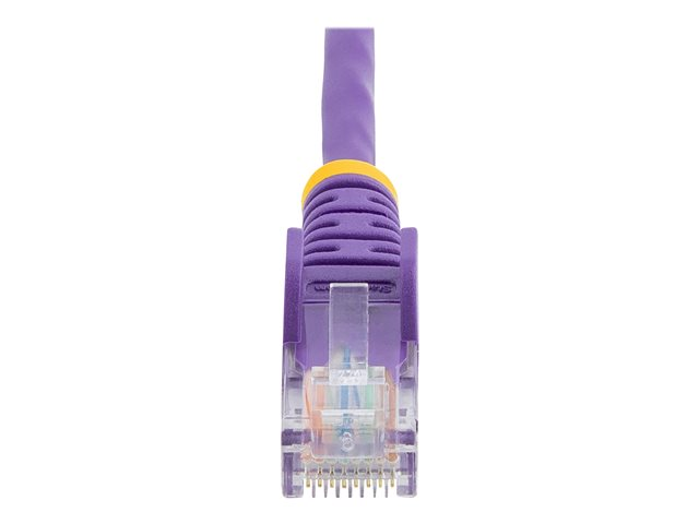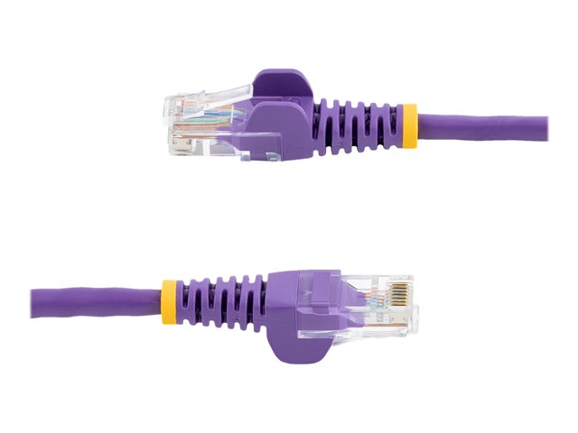 Denna Cat5e-kabel ger tillförlitliga nätverksanslutningar vilket garanterar hög prestanda för dina krävande Ethernet-applikationer. Hitta den längd och färg du behöver Denna lila nätverkskabel på 7 m är perfekt för användning i nätverksledningar och -rännor. Kabeln är avsedd för större avstånd som till exempel upp för en stolpe eller genom kontoret från en hubb till ett vägguttag. För enklare nätverksinstallationer finns våra Cat 5e-kablar i många olika längder och färger. Detta garanterar att du har rätt kabelstorlek tillgänglig när du behöver den och att du kan färgkoda dina anslutningar för en mer organiserad setup. Hakfria RJ45-klämmor skyddar dina nätverksanslutningar För problemfria kabeldragningar har denna hållbara kabel hakfria kontakter som skyddar RJ45-klämmorna vid installation för att minska risken för att de fastnar eller går sönder. Kabeln har dessutom gjutna kontakter som ger dragavlastning genom att förhindra att RJ45-kontakternas ändar böjs till skarpa vinklar. Detta minskar risken för att kabeln skadas, vilket skulle kunna försämra nätverksanslutningen och prestandan. 100 % koppar för enastående värde Få högsta värde av din kabelinvestering med våra Cat5e Ethernet-kablar, var och en tillverkad av kopparledare av högsta kvalitet. De är tillverkade och testade med omsorg för att bakåtöverhörning (NEXT) ska ligga väl inom godkända gränser. Tråd på 0,25 mm för högpresterande nätverksanslutningar Garantera hög prestanda för dina krävande Ethernet-applikationer, som till exempel power-over-Ethernet och 4K- eller 1080p-videoströmning, med kablar med 0,25 mm koppar. 50 µm guldkontakter ger maximal ledningsförmåga Du kan lita på att våra RJ45-kontakter ger optimal ledningsförmåga och samtidigt eliminerar signalförlöst orsakad av oxidering eller korrosion. 45PAT7MPL täcks av StarTech.coms livstidsgaranti för garanterad tillförlitlighet.