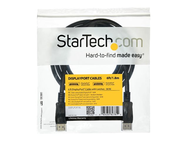 StarTech.com 5 m lång DisplayPort 1.2-kabel med lås M/M - DisplayPort 4k - DisplayPort-kabel - DisplayPort (hane) till DisplayPort (hane) - 5 m - sprintlåsning - svart
