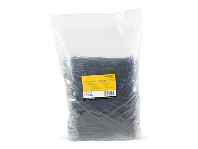 StarTech.com 15cm kabelkopplingar - 3mm bred, 39mm buntdiameter, 18kg draghållfasthet, självlåsande spärrband för nylon med böjd spets, 94 V-2/UL listad, 1000-pack - svart - Kabelsamlare - 15.24 cm - svart - TAA-kompatibel (paket om 1000)
