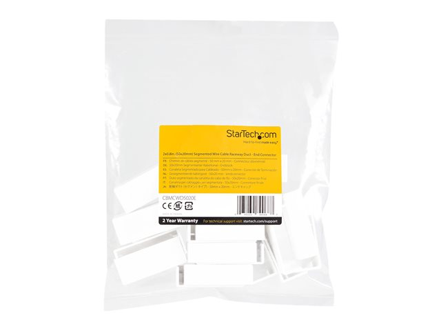 StarTech.com 20 Pack Cable Raceway End Cap for CBMCWD5020, Cable Management Accessories, Channel Raceway Fitting End Cap, Cable Raceway Connectors, Wiring Duct End Piece, UL Listed - ABS Plastic, UL94 HB (CBMCWD5020E) - Kabelrännas ändsockel - vit - TAA-kompatibel (paket om 20) - för P/N: CBMCWD5020