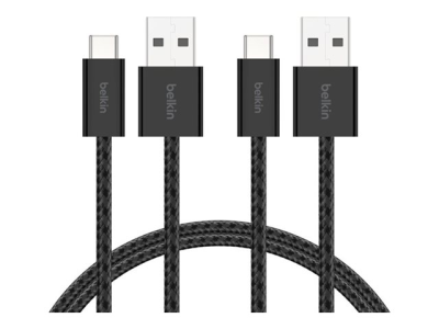 Belkin BoostCharge - USB-kabel - USB (hane) till 24 pin USB-C (hane) - 1.5 m - flätad kabel, USB Fast Charge (15W) - svart (paket om 2)