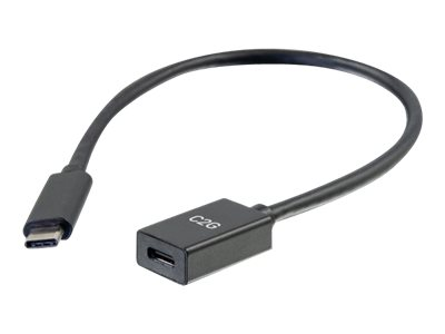 C2G 1ft USB-C to C 3.1 (Gen 2) Male to Female Extension Cable (10Gbps) - USB-förlängningskabel - 24 pin USB-C (hane) till 24 pin USB-C (hona) - USB 3.1 Gen 2 / Thunderbolt 3 - 3 A - 30 cm - formpressad - svart