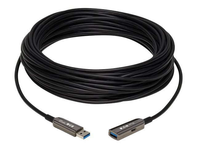 Eaton Tripp Lite Series USB-A 3.2 Gen 1 CL3-Rated Fiber Active Optical Cable (AOC) - Extension/Repeater, A/A M/F, Black, 10 m - USB-förlängningskabel - USB typ A (hane) till USB typ A, mikro-USB typ B (hona) - USB 3.2 Gen 1 - 10 m - Active Optical Cable (AOC) - svart, ljusgrå U330F-10M-G1