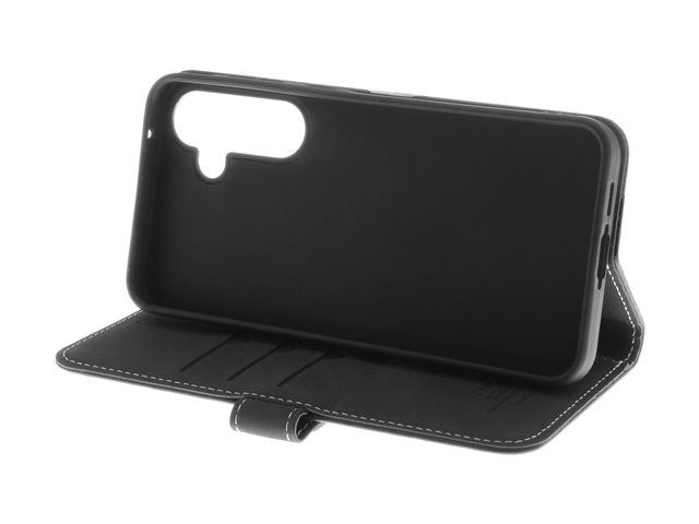 Insmat Exclusive - Baksidesskydd för mobiltelefon - genuint läder, kartong+papper+aluminiumfolie, termoplastisk polyuretan (TPU), bomullssömmar - svart - för Samsung Galaxy A55