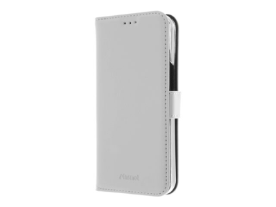 Insmat Exclusive Flip Case - Vikbart fodral för mobiltelefon - genuint läder, polykarbonat, bomullssömmar, kartong+papper - vit - för Apple iPhone 14 Plus
