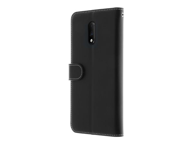 Insmat Exclusive Flip Case - Vikbart fodral för mobiltelefon - läder, polykarbonat - svart - för OnePlus 7 650-2758