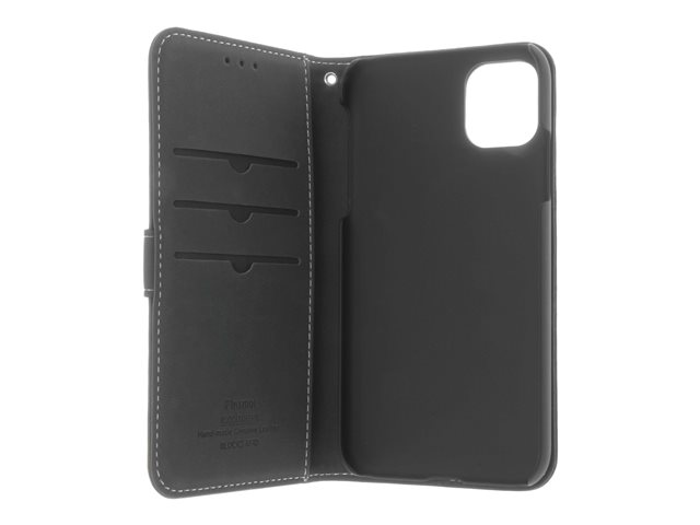 Insmat Exclusive Flip Case - Vikbart fodral för mobiltelefon - genuint läder, polykarbonat - svart - för Apple iPhone 11 Pro