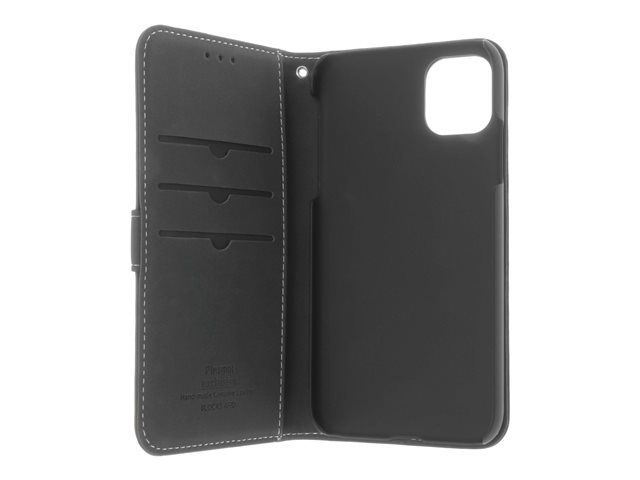 Insmat Exclusive Flip Case - Vikbart fodral för mobiltelefon - genuint läder, polykarbonat - svart - för Apple iPhone 11
