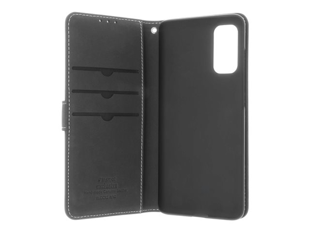 Insmat Exclusive Flip Case - Vikbart fodral för mobiltelefon - genuint läder, papper, kartong, aluminiumfolie - svart - för Samsung Galaxy S20, S20 5G