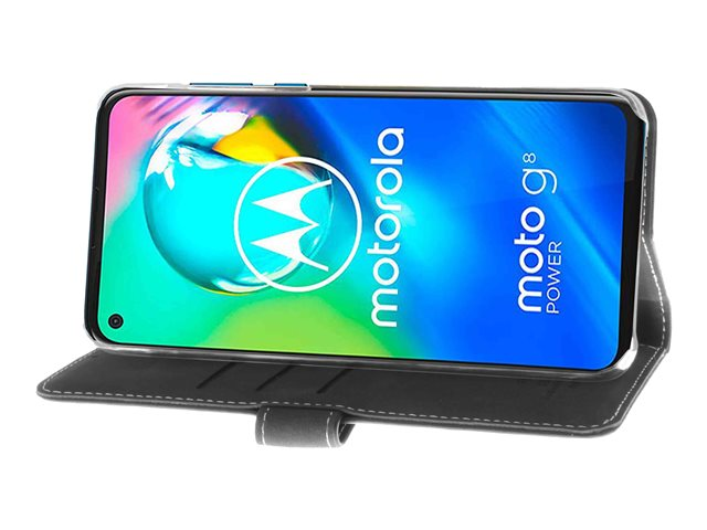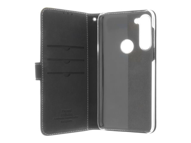 Insmat Exclusive Flip Case - Vikbart fodral för mobiltelefon - genuint läder, polyuretan, polykarbonat - svart - för Motorola Moto G8 Power