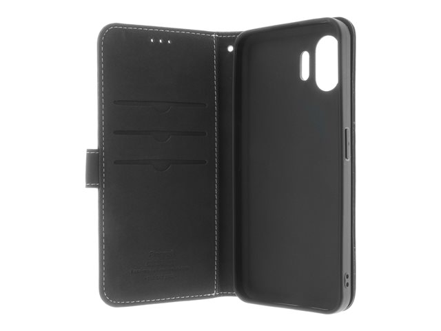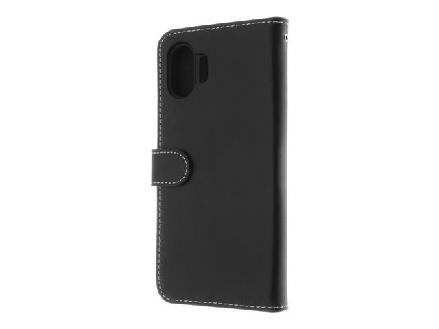 Insmat Exclusive - Vikbart fodral för mobiltelefon - genuint läder, termoplastisk polyuretan (TPU), kartong+papper+aluminiumfolie - svart - för Nothing Phone (2)