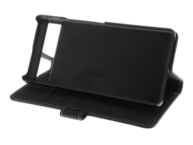 Insmat Exclusive - Vikbart fodral för mobiltelefon - genuint läder, polykarbonat, kartong+papper+aluminiumfolie - svart - för Google Pixel 7a