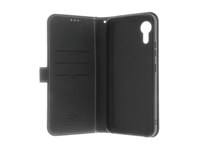 Insmat Exclusive - Vikbart fodral för mobiltelefon - genuint läder, kartong+papper, polyuretan, termoplastisk polyuretan (TPU) - svart - för Samsung Galaxy XCover7