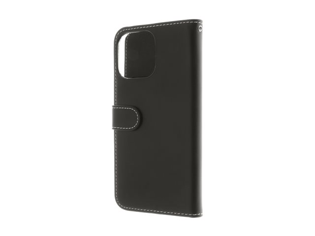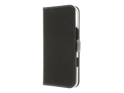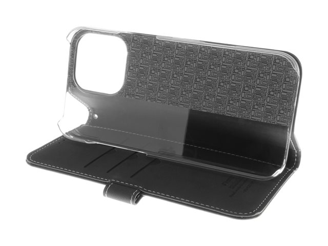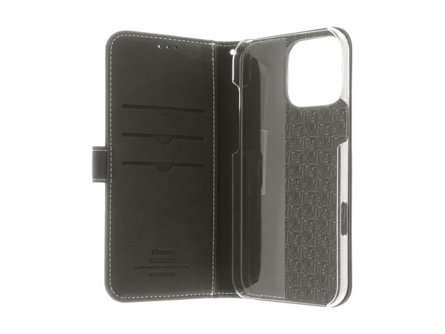 Insmat Exclusive - Vikbart fodral för mobiltelefon - genuint läder, kartong+papper+aluminiumfolie, polykarbonat (PC), bomullssömmar - svart - för Apple iPhone 16 Pro Max