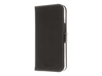 Insmat Exclusive - Vikbart fodral för mobiltelefon - genuint läder, termoplastisk polyuretan (TPU), kartong+papper+aluminiumfolie, bomullssömmar - svart - för Apple iPhone 13