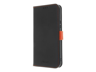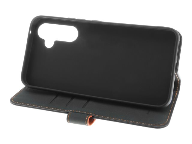 Insmat Flip Case - Vikbart fodral för mobiltelefon - genuint läder, termoplastisk polyuretan (TPU), kartong+papper+aluminiumfolie - svart/orange - för Samsung Galaxy A34 5G 650-3145