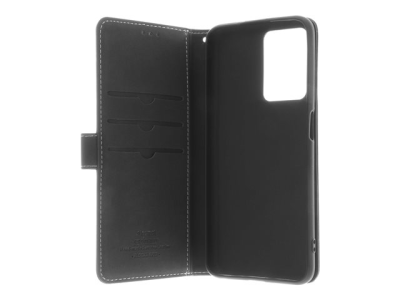 Insmat - Vikbart fodral för mobiltelefon - genuint läder, termoplastisk polyuretan (TPU), kartong+papper+aluminiumfolie, bomullssömmar - svart - för OPPO A16s