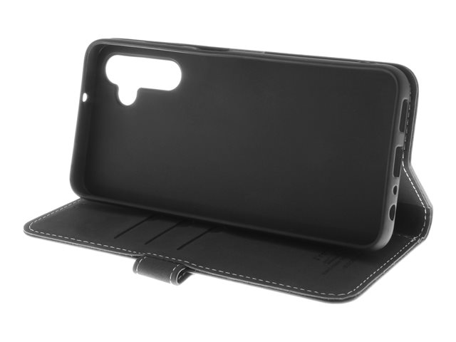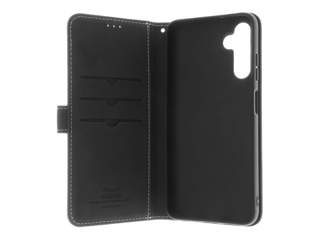Insmat - Vikbart fodral för mobiltelefon - genuint läder, kartong+papper, polyuretan, termoplastisk polyuretan (TPU) - svart - för Samsung Galaxy A15, A15 5G