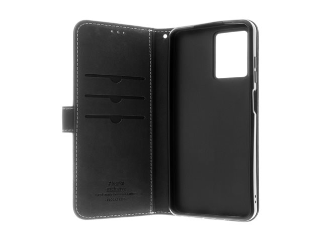 Insmat - Vikbart fodral för mobiltelefon - genuint läder, kartong+papper, polykarbonat, bomullssömmar - svart - för HMD Pulse+ 650-3248