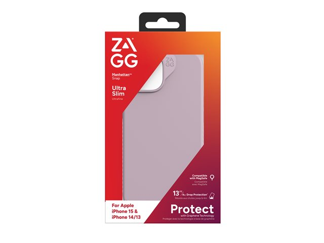 ZAGG Manhattan Snap - Baksidesskydd för mobiltelefon - MagSafe-kompatibilitet - silikon - lavendel - för Apple iPhone 13, 14, 15