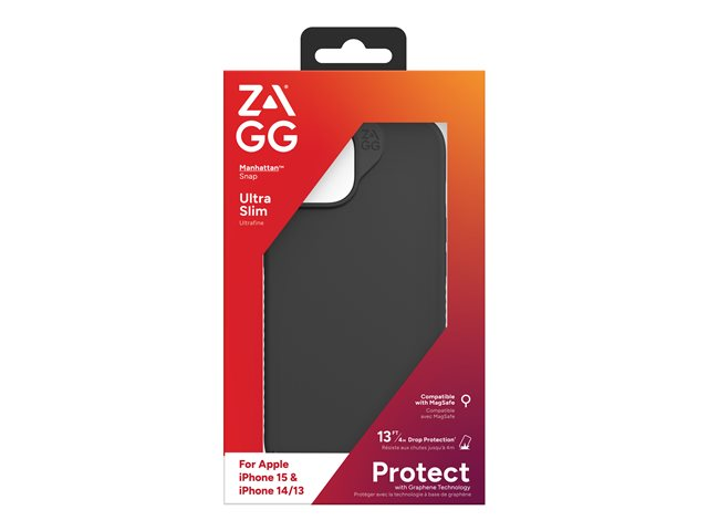 ZAGG Manhattan Snap - Baksidesskydd för mobiltelefon - MagSafe-kompatibilitet - silikon - svart - för Apple iPhone 13, 14, 15