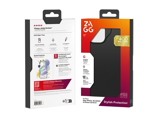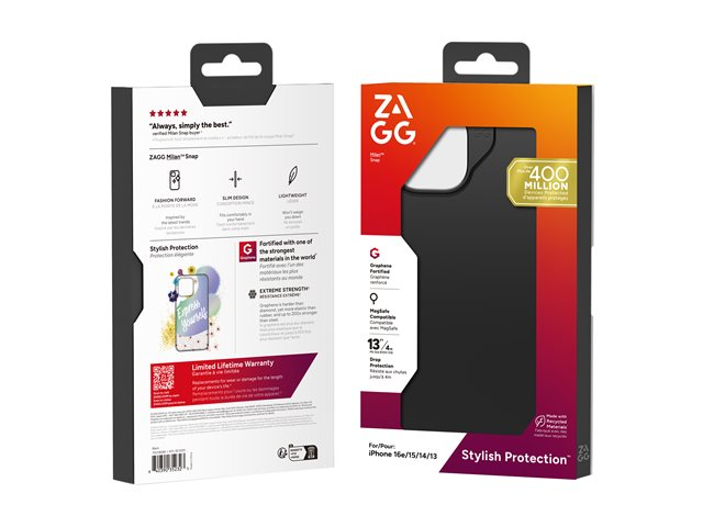 ZAGG Milan Snap - Baksidesskydd för mobiltelefon - svart - för Apple iPhone 13, 14, 15, 16e
