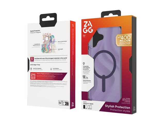 ZAGG Milan Snap - Baksidesskydd för mobiltelefon - MagSafe-kompatibilitet - grafen - glittervirvel - för Apple iPhone 17