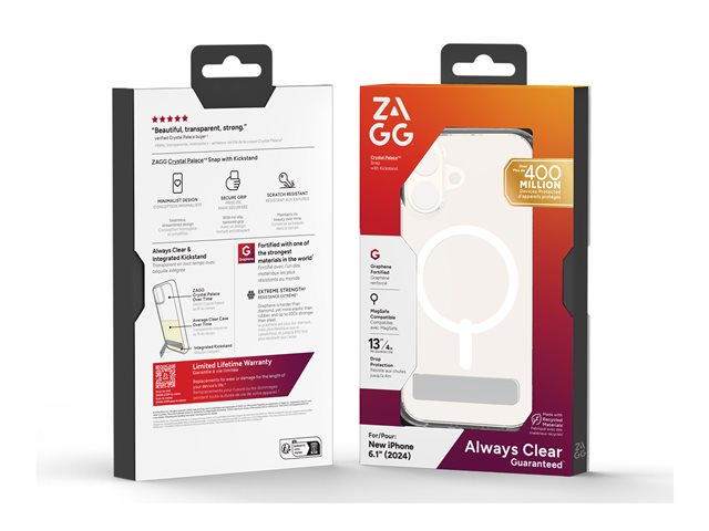 Zagg Crystal Palace Snap - Baksidesskydd för mobiltelefon - med stativ - MagSafe-kompatibilitet - klar - för Apple iPhone 16