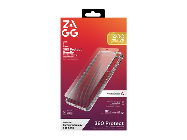Zagg - Luxe & Glass 360 Bundle - baksidesskydd för mobiltelefon - grafen - klar - med skärmskyddare - för Samsung Galaxy S25 Edge