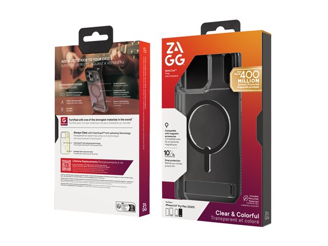 Zagg Santa Cruz Snap - Baksidesskydd för mobiltelefon - med fällbart ställ - MagSafe-kompatibilitet - gagatsvart - för Apple iPhone 17 Pro Max