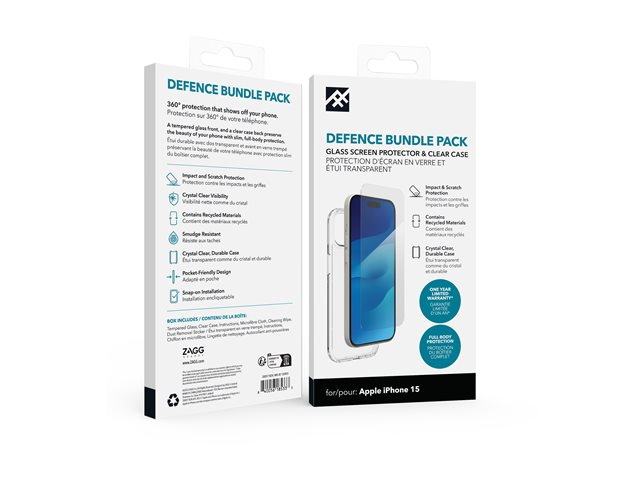 iFrogz Defence - Baksidesskydd för mobiltelefon - CrystalClear - med skärmskyddare - för Apple iPhone 15