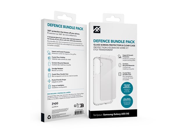 iFrogz Defence - Baksidesskydd för mobiltelefon - klar - med skärmskyddare - för Samsung Galaxy A55 300514205