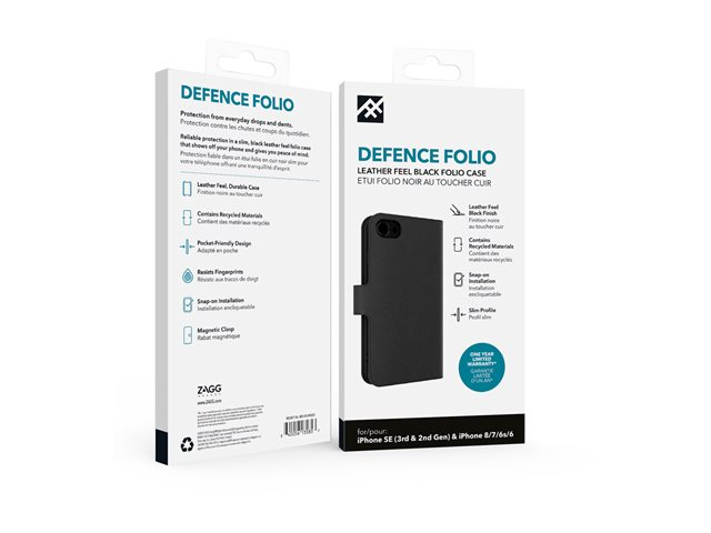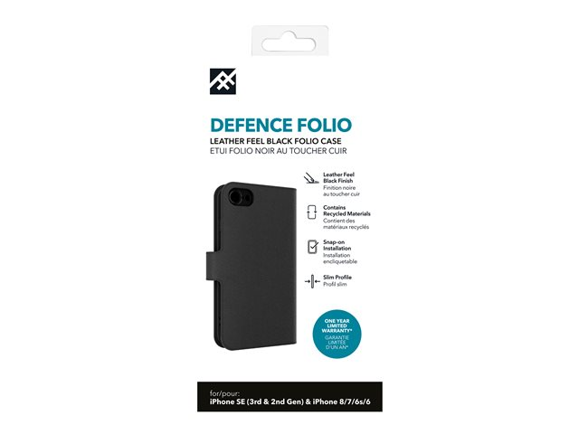 iFrogz Defence - Vikbart fodral för mobiltelefon - läder - svart - för Apple iPhone 6, 6s, 7, 8, SE (3rd generation), SE (andra generationen)