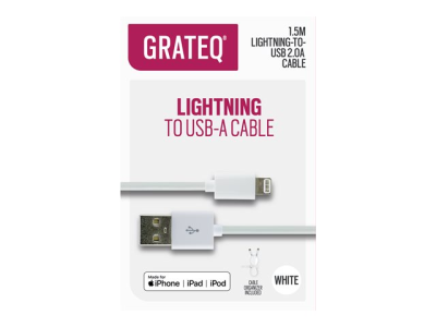 GRATEQ - Lightning-kabel - USB hane till Lightning hane - 1.5 m - vit