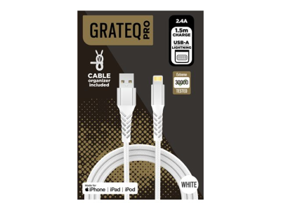 GRATEQ PRO - Lightning-kabel - USB hane till Lightning hane - 1.5 m - vit - USB Power Delivery, flätad kabel