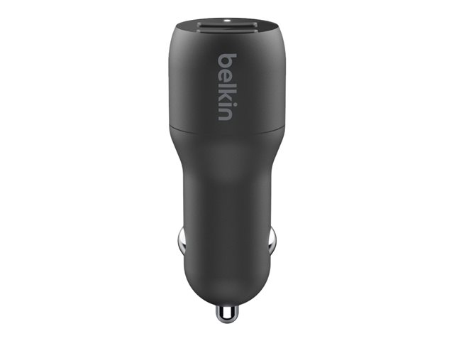 Belkin BoostCharge Dual Charger - Strömadapter för bil - 24 Watt - 4.8 A - 2 utdatakontakter (USB) - på kabel: USB-C - svart CCE001BT1MBK