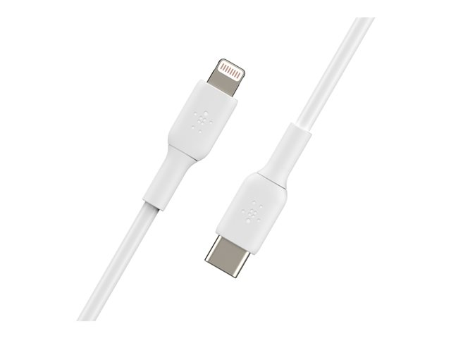 Belkin BoostCharge - Lightning-kabel - 24 pin USB-C hane till Lightning hane - 1 m - vit - USB-strömförsörjning (18W)