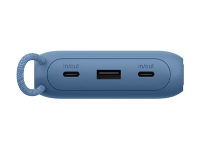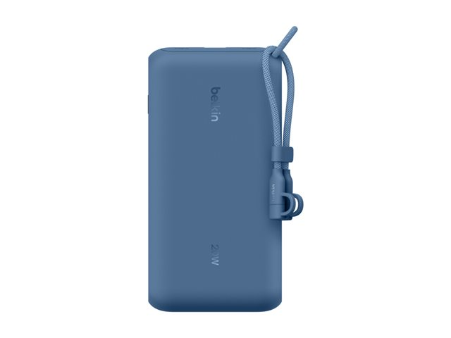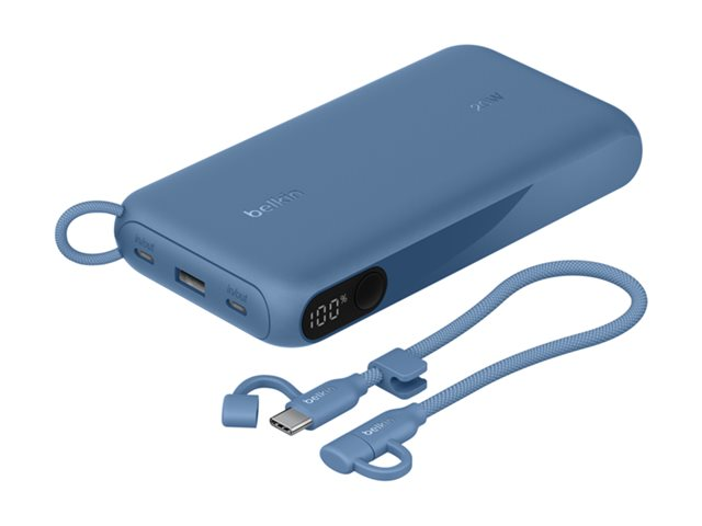 Belkin BoostCharge - Power bank - med display - 20000 mAh - 20 Watt - PD - 3 utdatakontakter (2 x USB-C, USB) - på kabel: USB-C - blå BPB028HQBL