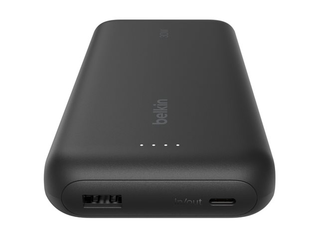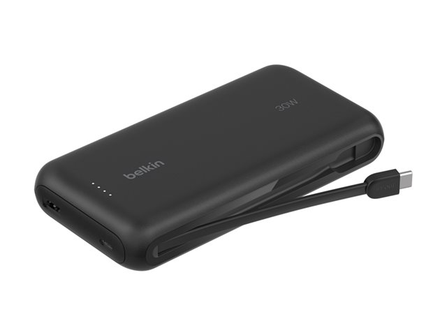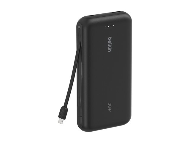 Belkin BoostCharge - Power bank - med integrerad kabel - 20000 mAh - 30 Watt - PD - 3 utdatakontakter (2 x USB-C, USB) - svart