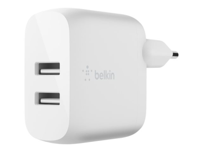Belkin BoostCharge - Strömadapter - 24 Watt - 2 utdatakontakter (USB) - vit WCD001VF1MWH