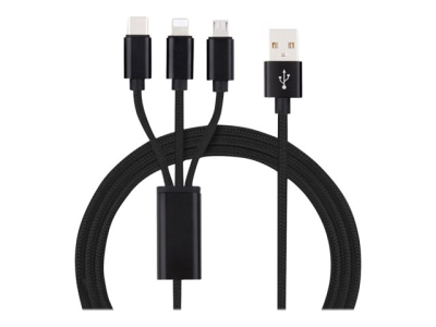 Insmat 3-IN-1 - Lightning-kabel - USB hane till mikro-USB typ B, Lightning, 24 pin USB-C hane - 1.2 m - svart