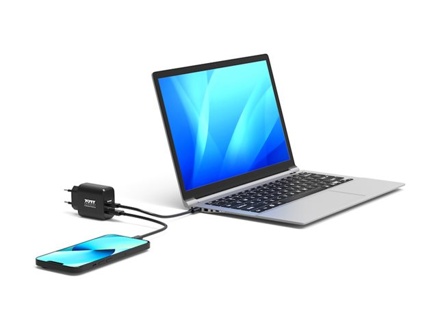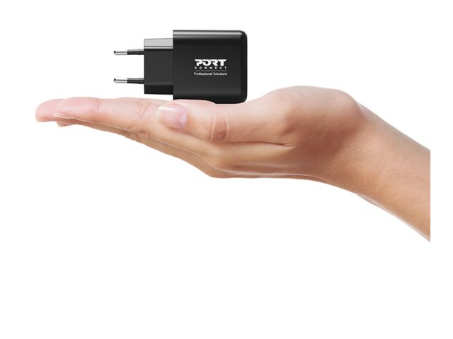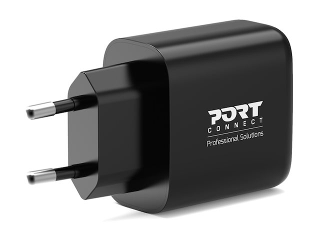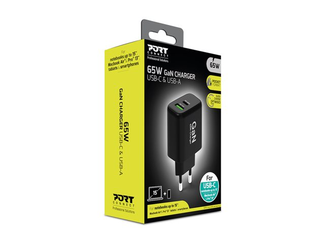 PORT Connect - Strömadapter - GaN - 65 Watt - 3.25 A - PD, QC 3.0 - 2 utdatakontakter (USB typ A, 24 pin USB-C) - Europa